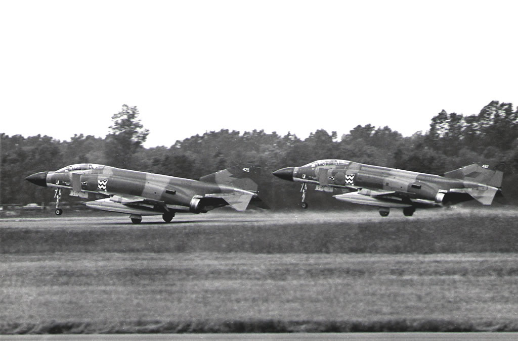 On 11 February 1949, No 691 Squadron based at Chivenor for anti-aircraft co-operation duties was renumbered No 17 Squadron, being officially disbanded on 13 March 1951, passing its tasks to No 3 CAACU which was formed five days later. No 17 reformed at Wahn on 1 June 1956 as a Canberra photographic reconnaissance squadron in Germany, disbanding on 31 December 1969. On 1 September 1970, No 17 reformed at Bruggen with Phantoms, which were flown until December 1975. Conversion to Jaguars began in September. In January 1985 the squadron began to convert to Tornado GR1s, the Jaguar element disbanding on 1 March 1985 when No 17 became fully equipped with Tornados. In 2003 No 17 became the first RAF squadron to receive the Eurofighter Typhoon. Based a Warton it's responsibilities include the evaluation of the new aircraft and its integration into full squadron service. On 19 May 2005, the Squadron officially reformed with the presentation of the Squadron Standard at RAF Coningsby in Lincolnshire, to become No 17 (Reserve) Squadron, the Typhoon Operational Evaluation Unit, disbanding on 12 April 2013 once the Typhoon was fully operational. The Squadron stood up almost immediately at Edwards AFB, California, on 12 April 2013 as the joint RAF/Royal Navy Test and Evaluation Squadron for the new Lockheed Martin F-35B Lightning under the name of No. 17 Test and Evaluation Squadron (TES)
