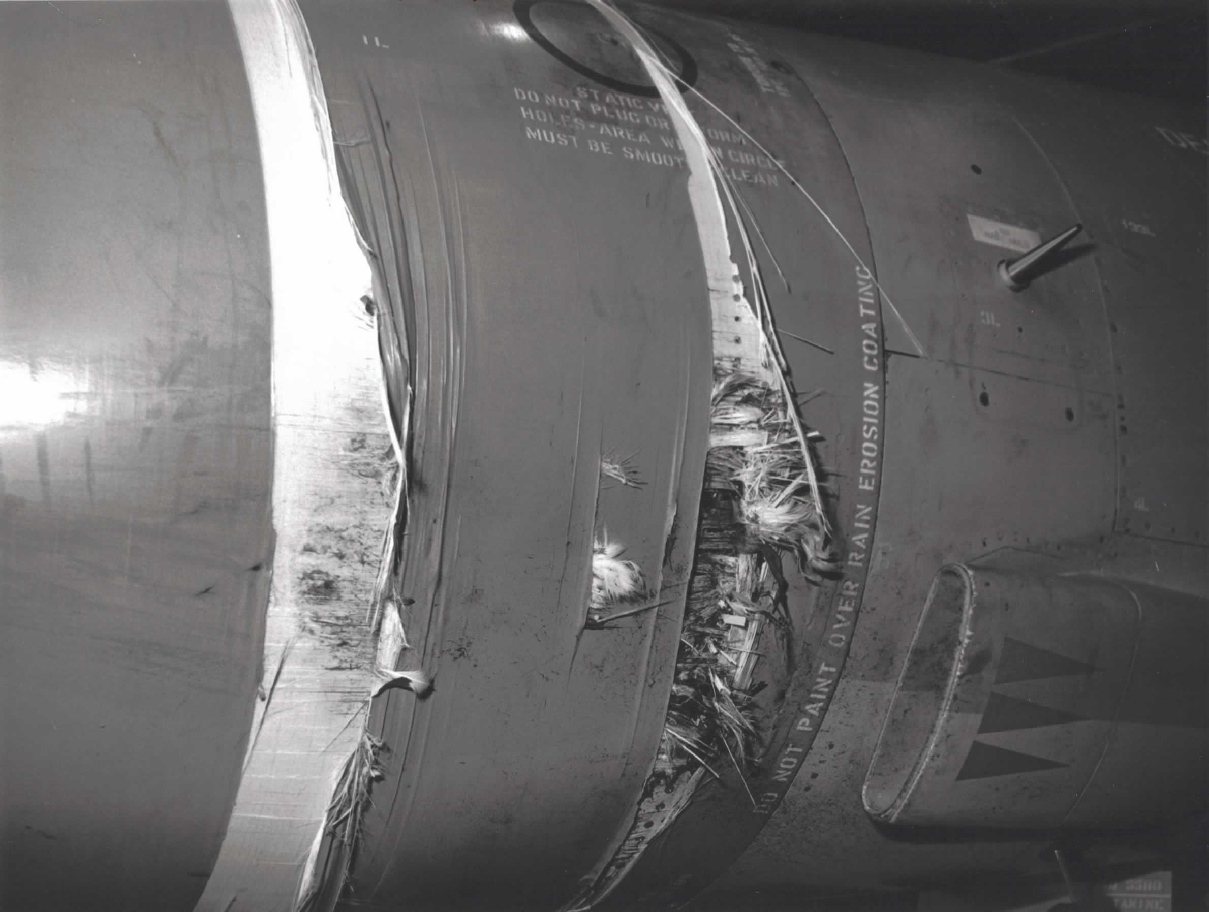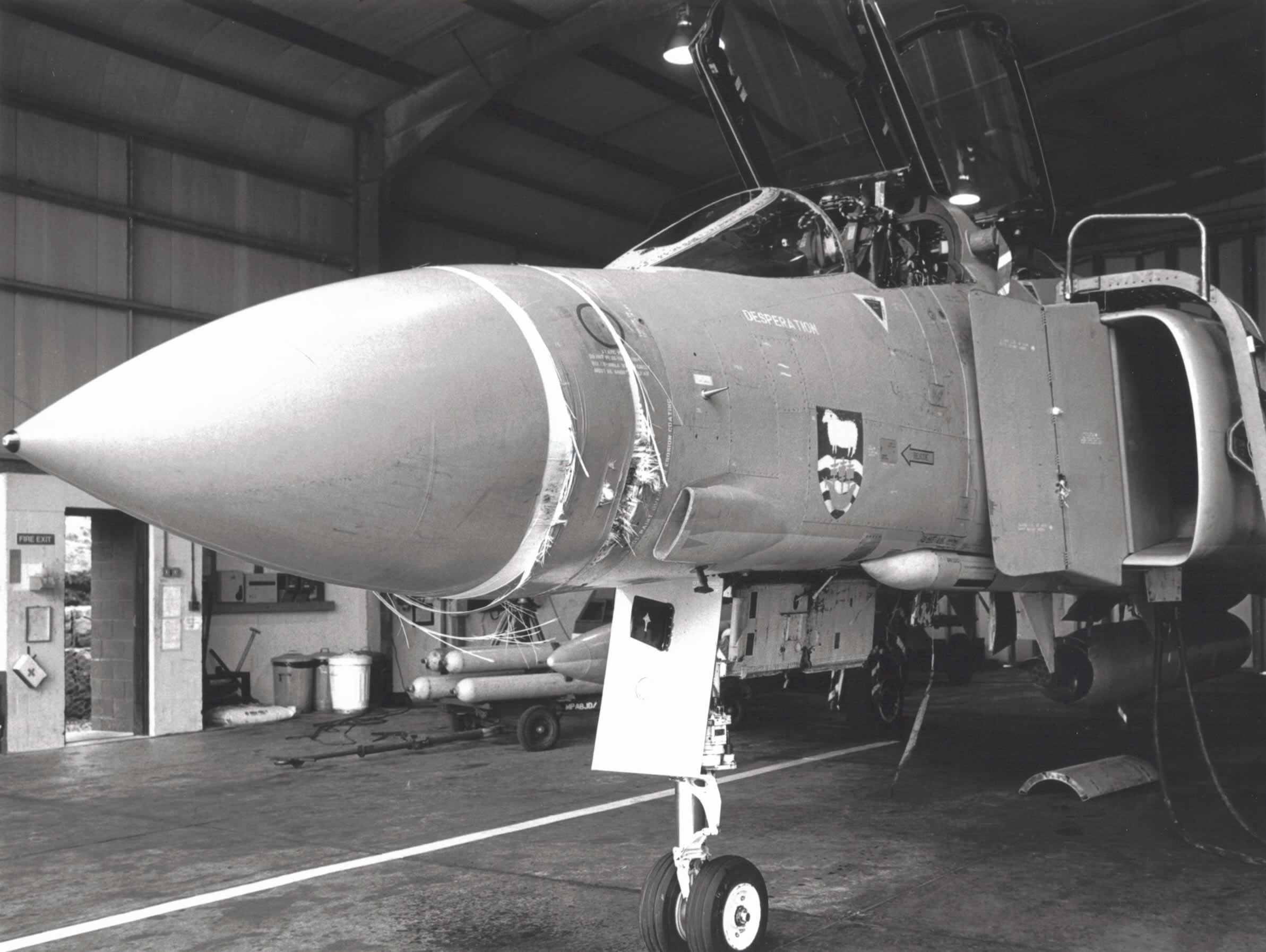Whilst on normal patrol duties down in the Falkland Islands in May 1990, XV466 suffered a birdstrike to the centre, left hand side of the radome.